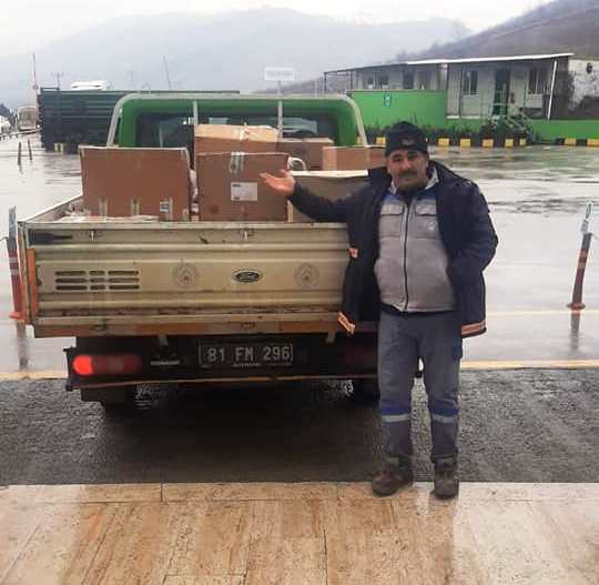 Gümüşova Organize sanayi’nde 2 adet fabrikası bulunan ve 800 kişi çalıştıran Gama recycle Sürdürülebilir teknolojiler A.Ş.Yönetim Kurulu başkanı Zafer Kaplan , depremzedelere yardımda bulundu.