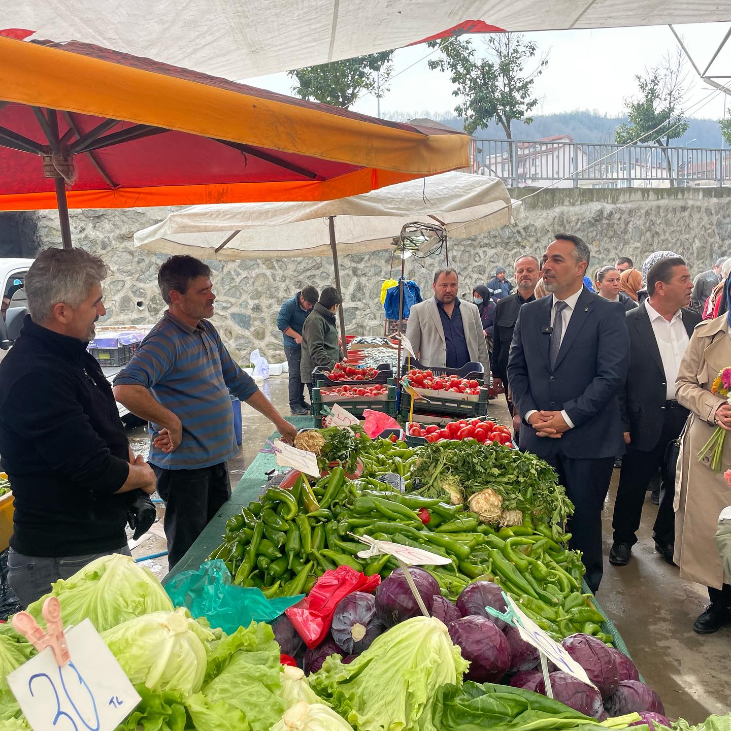 AK Parti Gümüşova Belediye Başkan Adayı Kenan Sübekçi, ilçe yöneticileri ile birlikte Gümüşova Pazarı'nda esnaf ve vatandaşlarla bir araya geldi.