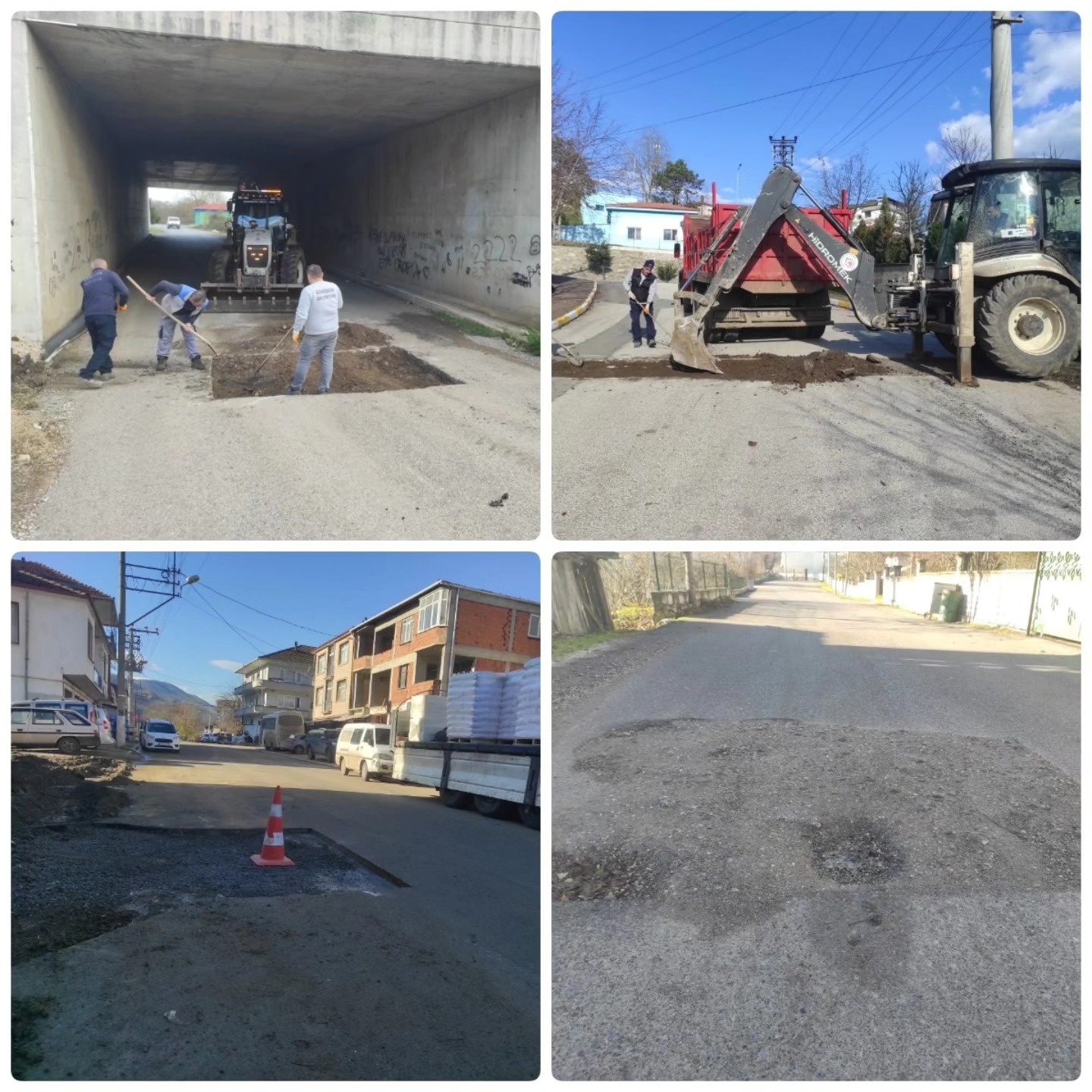 Gümüşova Belediye Başkan Kenan Sübekçi ‘’Altyapı çalışmaları vb. sebeplerle zarar gören asfalt yollarımızın onarım işlemleri Fen İşleri Müdürlüğümüz tarafından gerçekleştirilmektedir.’’dedi