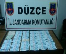 Düzce Jandarması, piyasaya sahte para ve çek sürmek isteyen kişileri yakaladı.  Alınan bir ihbar neticesinde Üçyol bölge