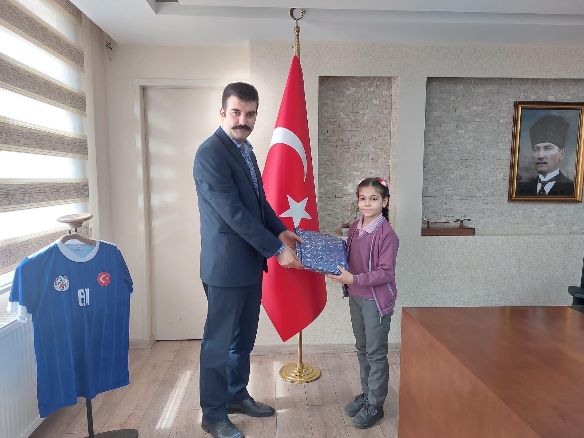 Gümüşova Kaymakamı Selçuk Yosunkaya, ziyaretin sonunda tüm çocukların ‘23 Nisan Ulusal Egemenlik ve Çocuk Bayramı”nı kutlayarak, Gümüşova ilkokulu öğrencisi Ecrin Güler’e hediye takdiminde bulundu.