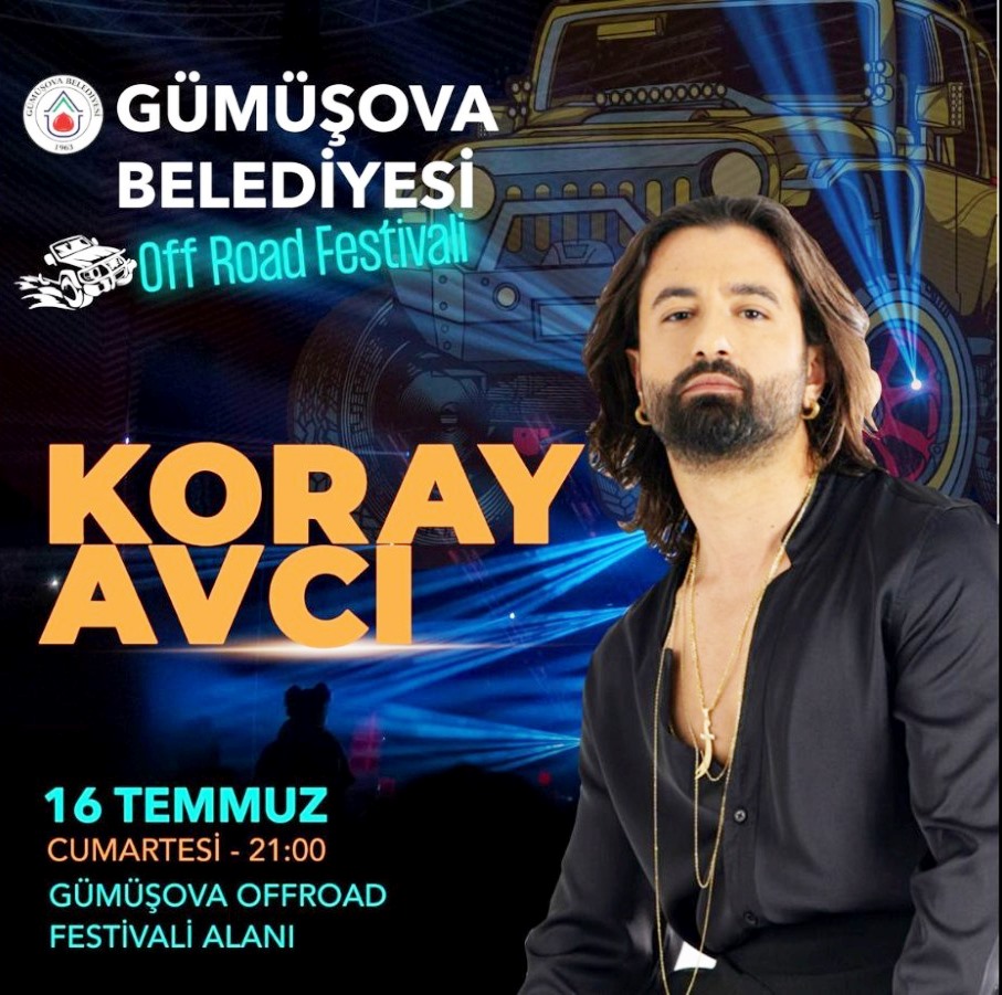 Gümüşova Belediyesi 15-16-17 Temmuz 2022 tarihlerinde düzenleyecek 0lduğu Off Road festivalinde Şarkıcı Koray Avcıyı sahne aldırarak vatandaşlara zevkli zaman geçirtecek.