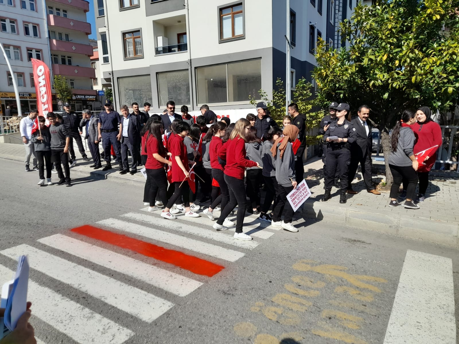 İçişleri Bakanlığı'nın yayalara durarak ilk geçiş hakkını vermeye dikkat çekmek ve farkındalık oluşturmak amacıyla 81 ilde başlattığı 'Kırmızı Çizgi' Hayata Saygı Duruşu İlçemizde de hayata geçirildi.
