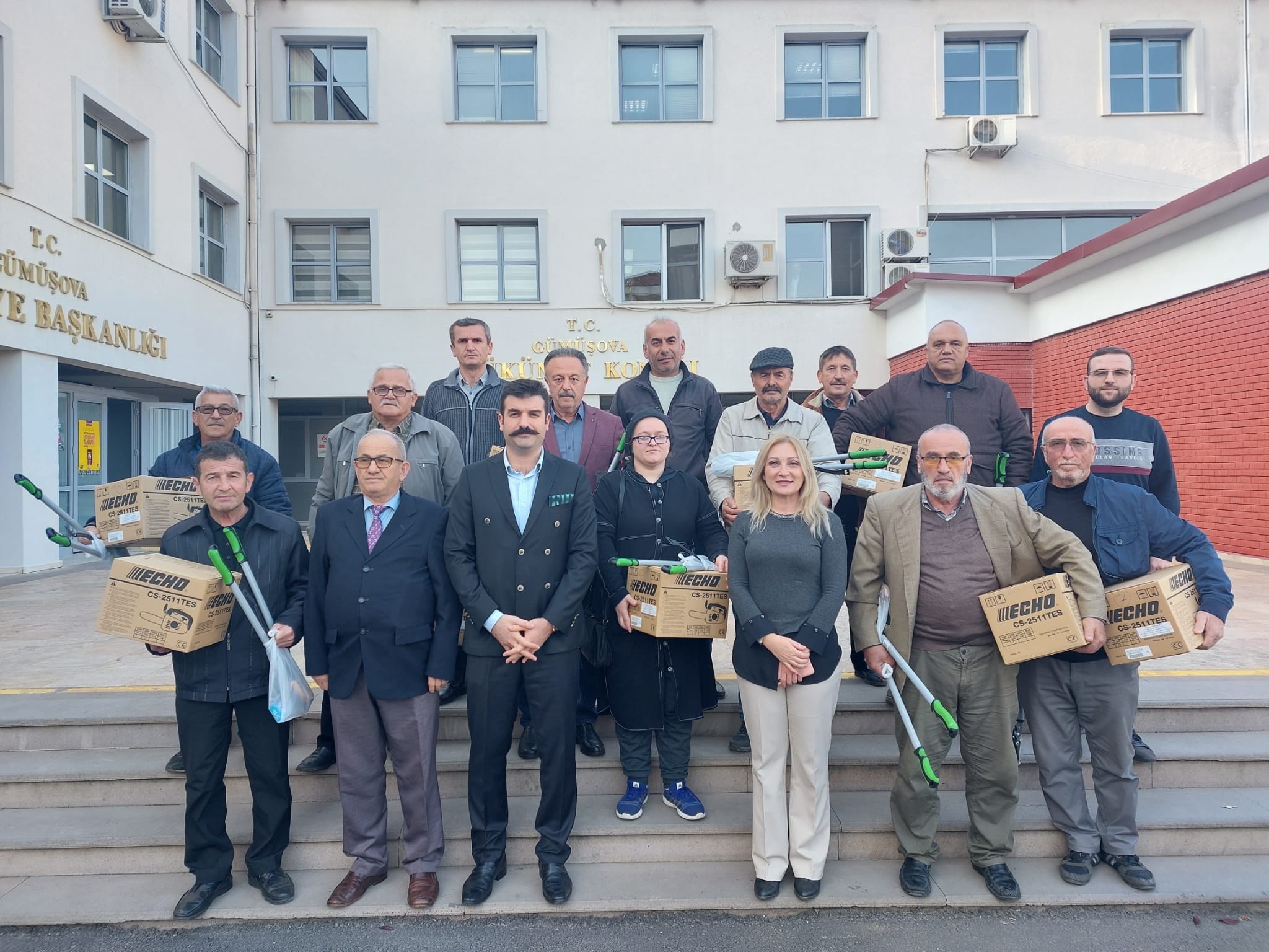 Tarımsal Faaliyetlerin Geliştirilmesine Yönelik Olarak Fındık Bitkisinde Budama Elemanı Yetiştirilmesi Projesi Kapsamında Tarım ve Orman Bakanlığı tarafından bir kısmı finanse edilen tarım aletleri Gümüşova Kaymakamı Selçuk Yosunkaya, İlçe Tarım ve Orman Müdürü Ramazan Taran ve İlçe Tarım Personelleri tarafından Çiftçilere takdim edildi.