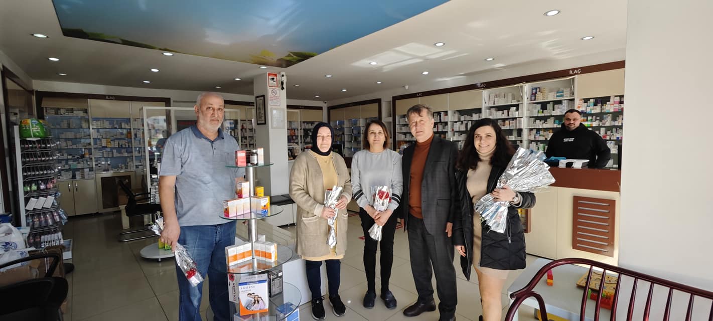 Belediye Başkan yardımcısı Turan Sadak 14 mart Tıp bayramı münasebetiyle Sağlık ve Eczane çalışanlarına Başkan Muharrem Tozan adına çiçek verilerek Tıp bayramını kutladı