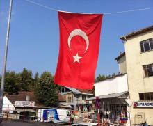 Cumayeri ilçesi’ne Burası Cumayeri gazetesi çalışanları dev Türk Bayrağı astı. Burası Cumayeri gazetesi imtiyaz sahibi Nevzat Kel